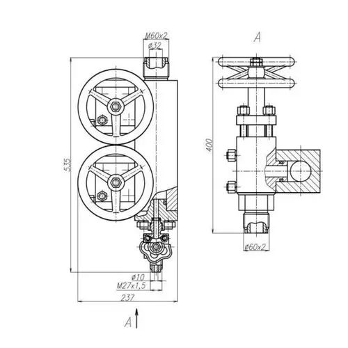 Колонка клапанная - 2 клапана запорных, 1 клапан запорный концевой
