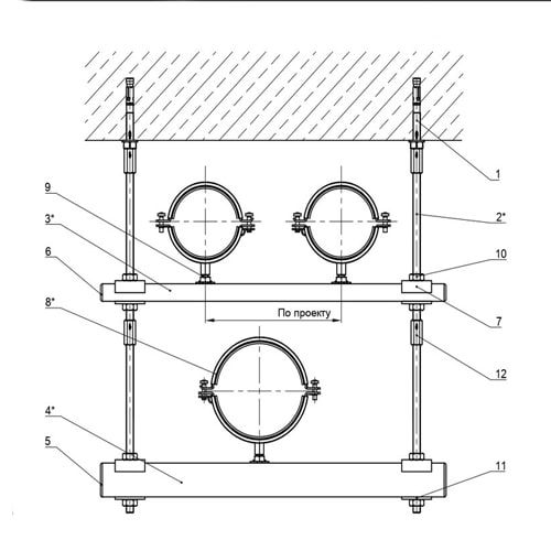 Крепление трех трубопроводов к перекрытию: надежность и эффективность